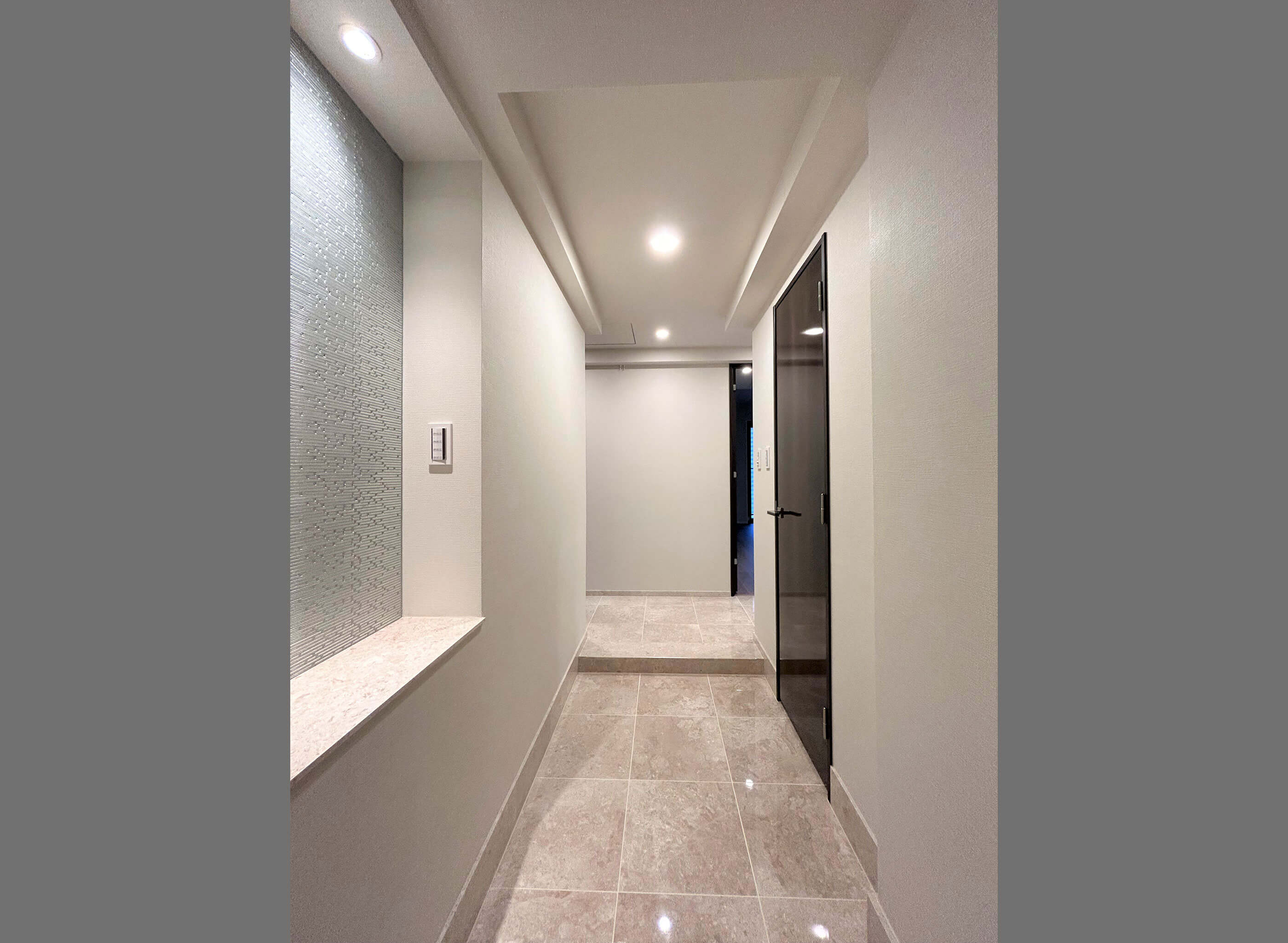 成約済み- 玄関ニッチカウンター。壁面には「モザイクタイル」をオプション装備