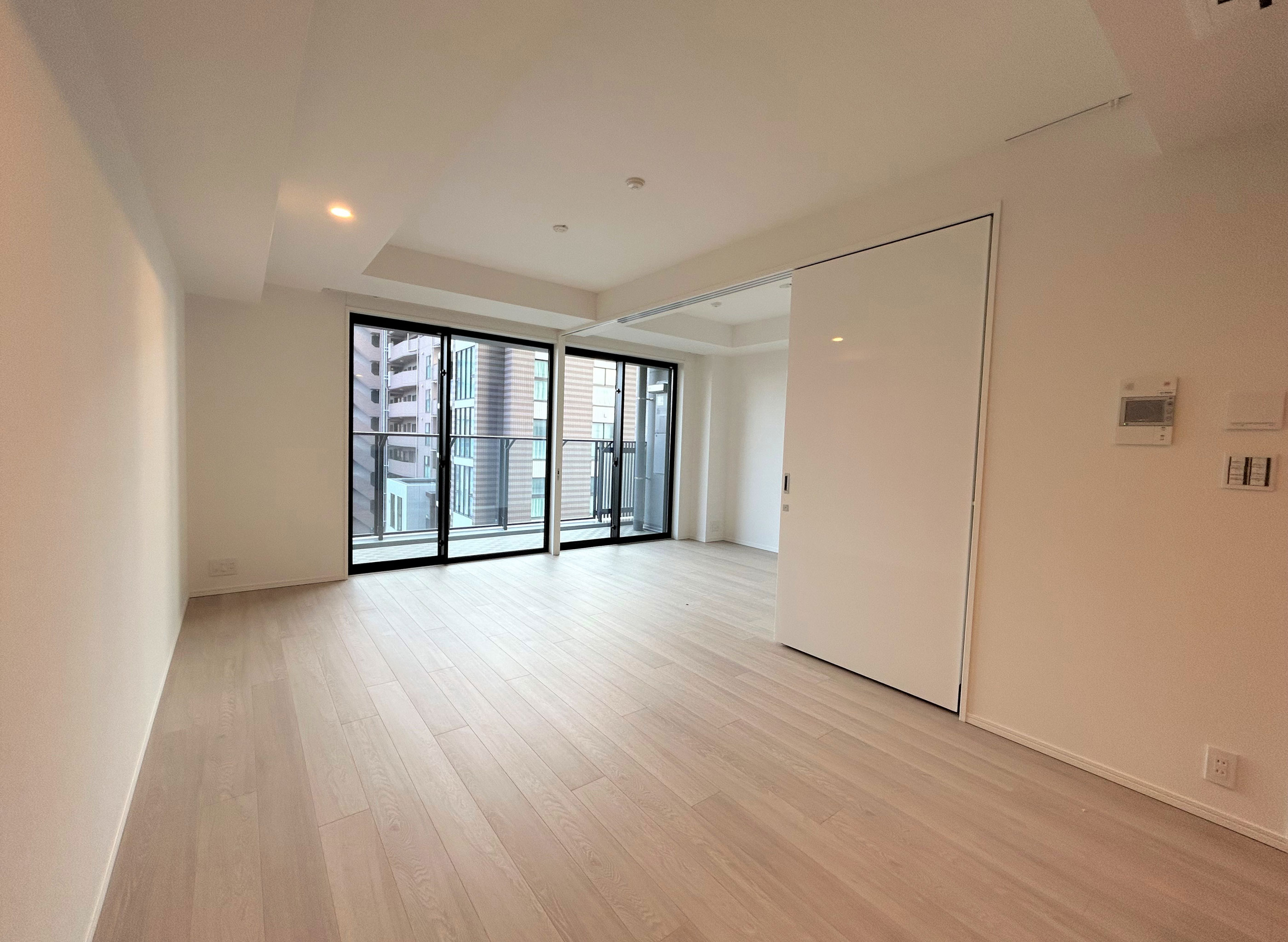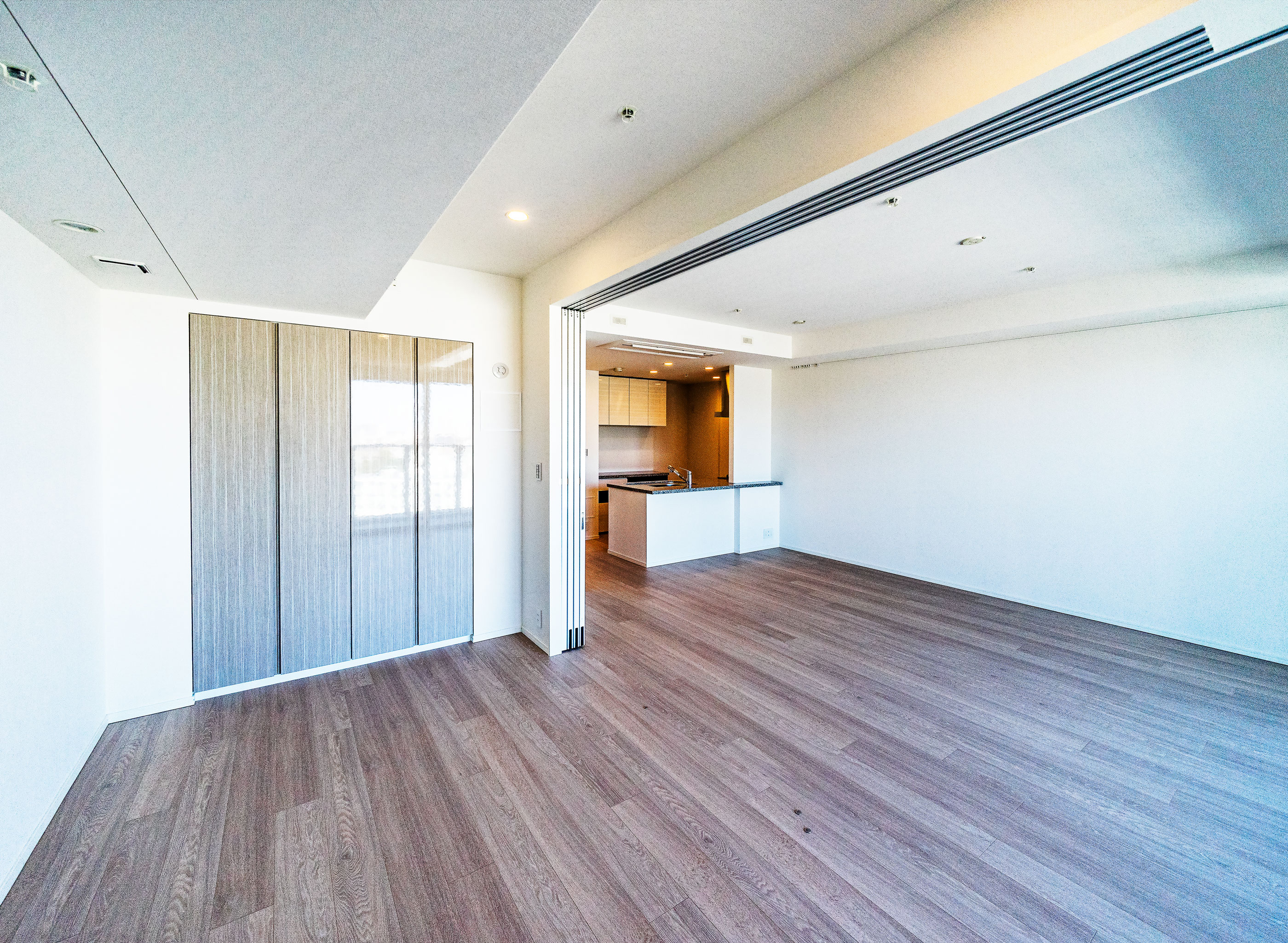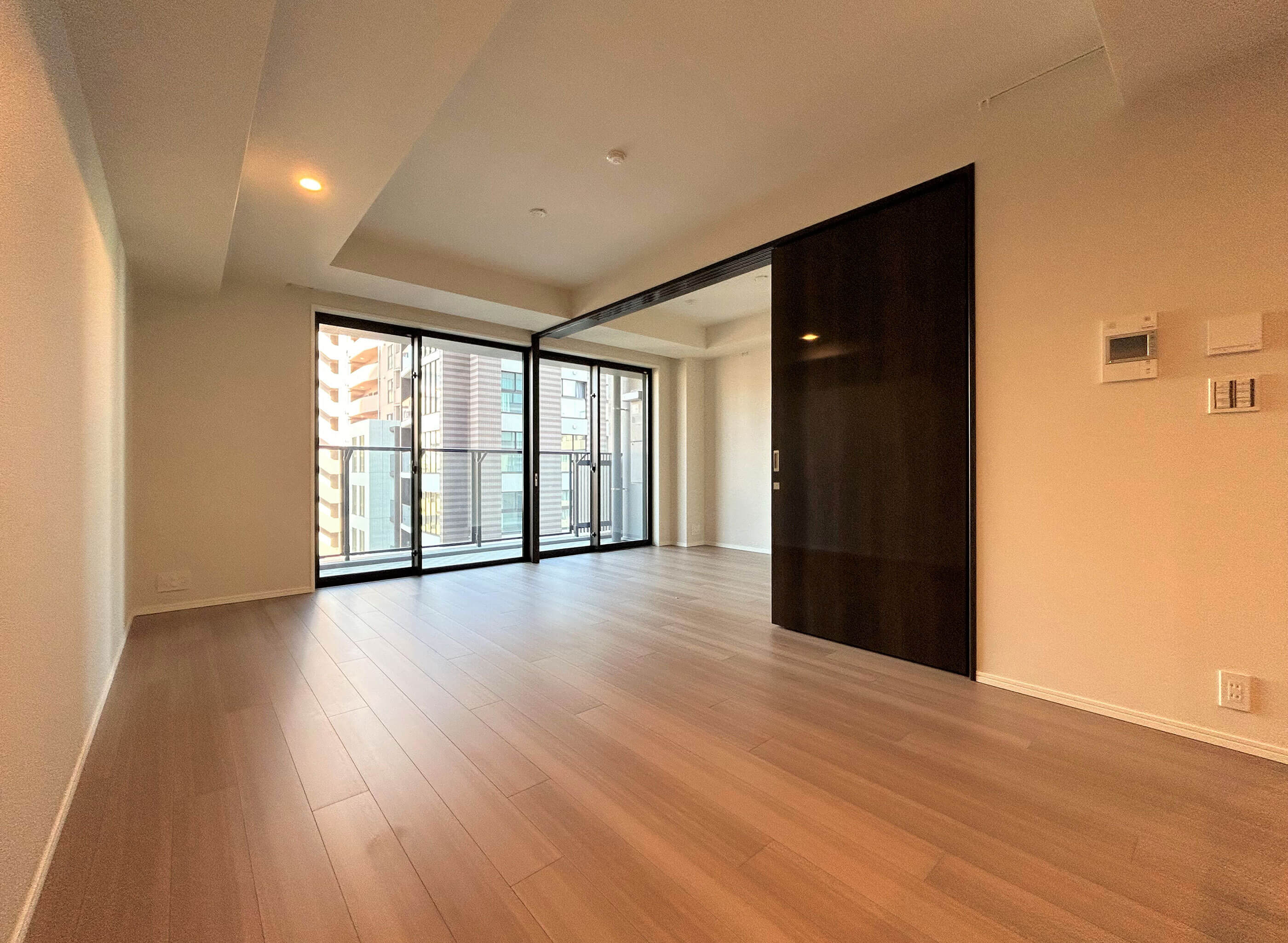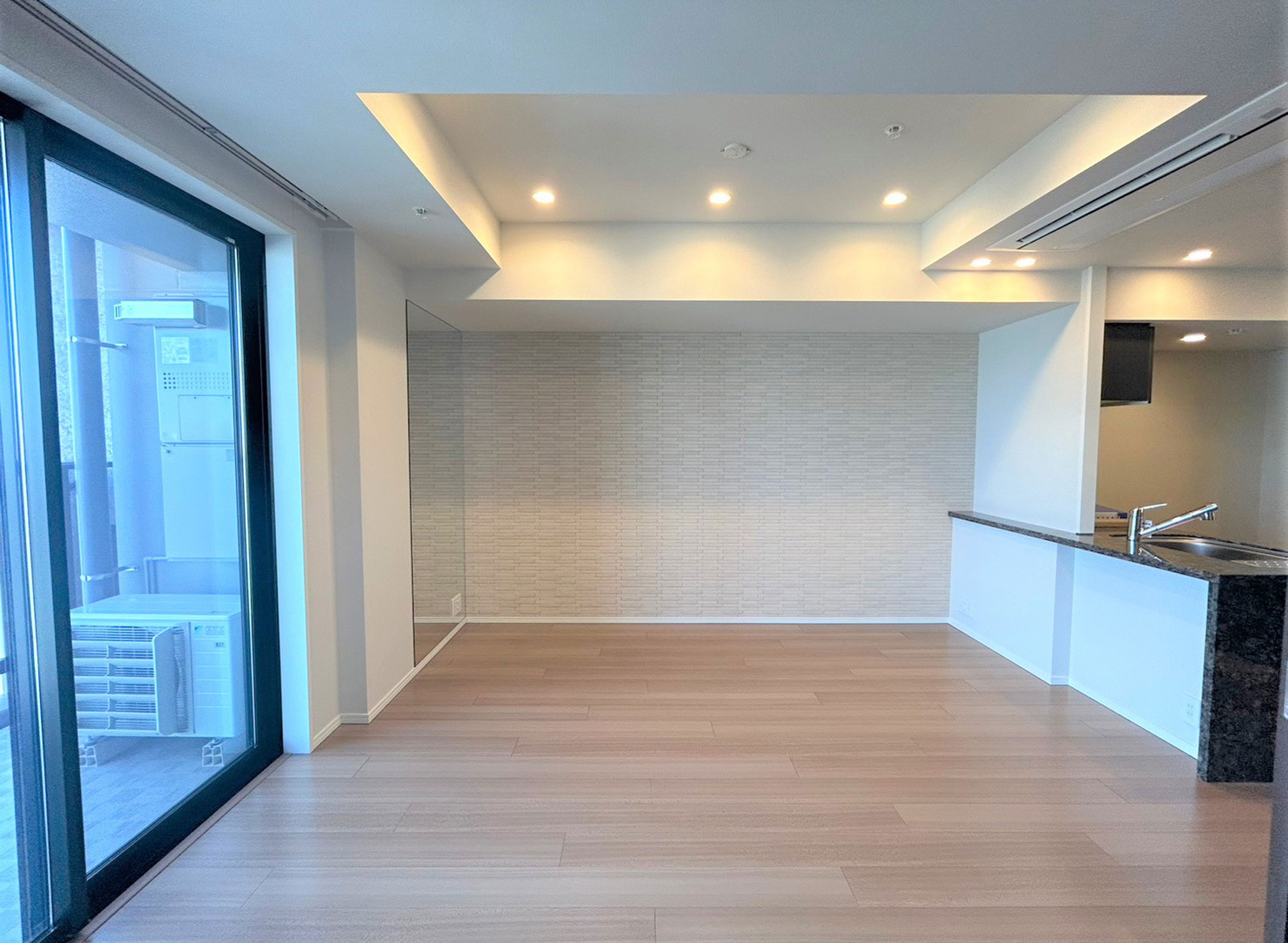 - LDと洋室(5.0帖)の可動間仕切りは、窓面に袖壁がない一体感を実現